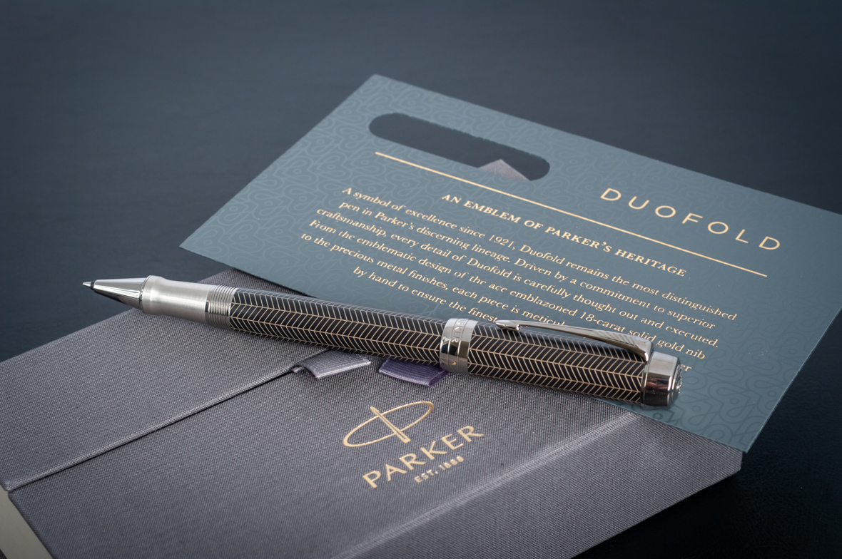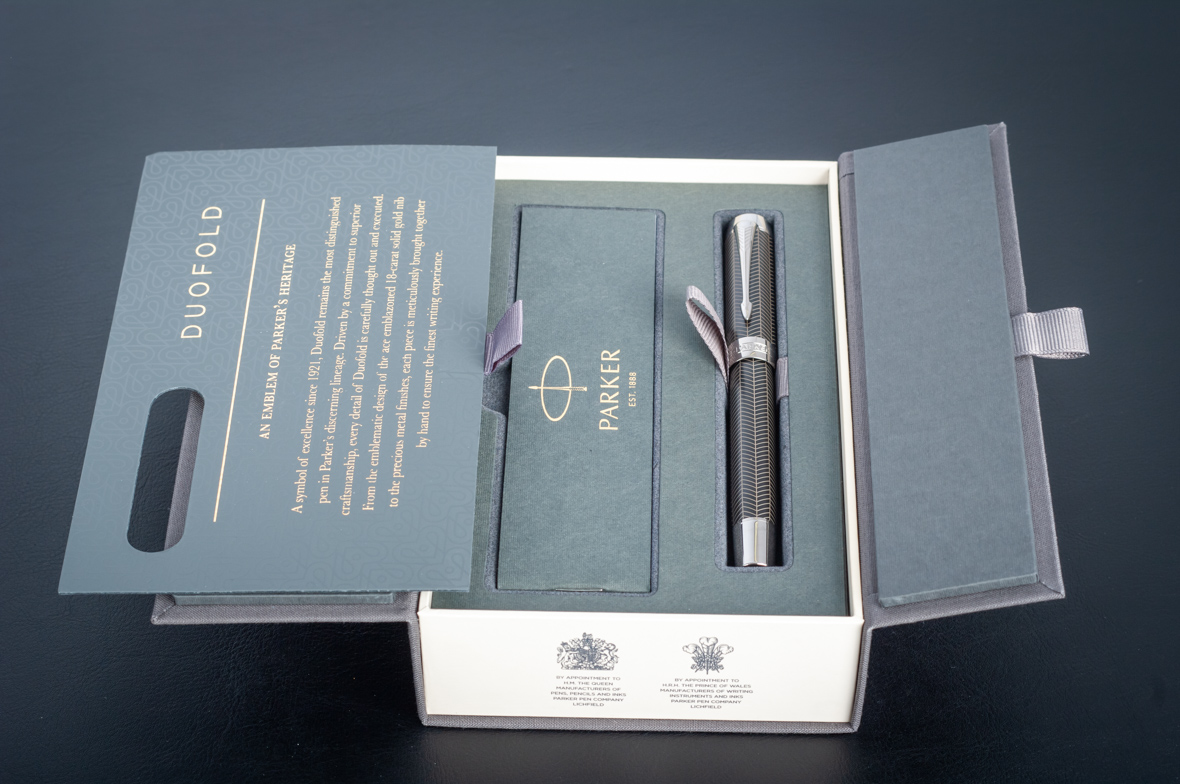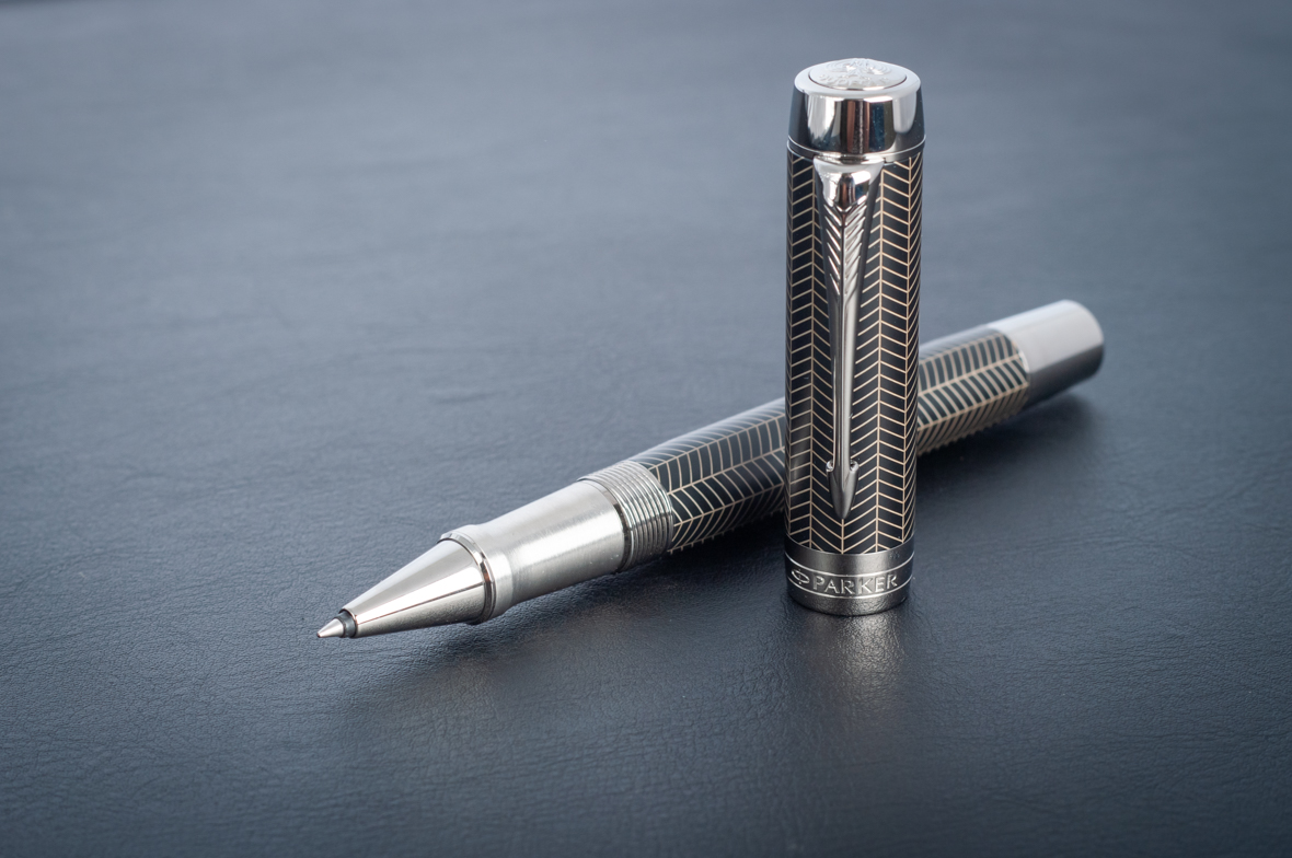 Ручка роллер Parker Duofold Prestige Centennial Black Chevron CT от официального дилера Parker в Казани. Вы можете дополнительно заказать гравировку, которая подчеркнет Вашу оригинальность и придаст памятность статусному подарку. Все ручки Паркер поставляются в фирменном футляре.