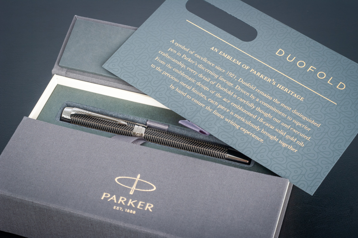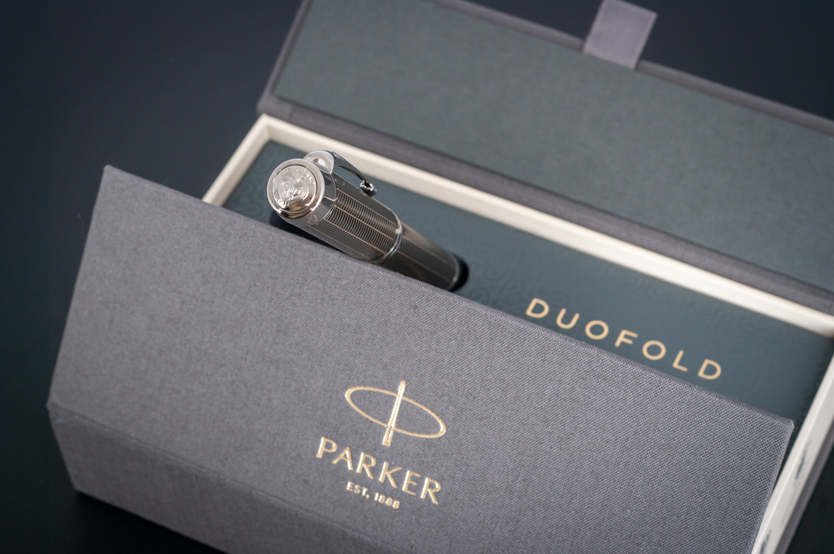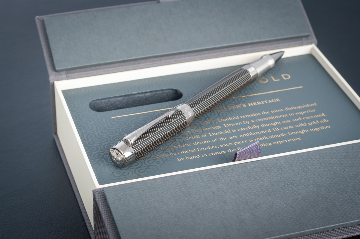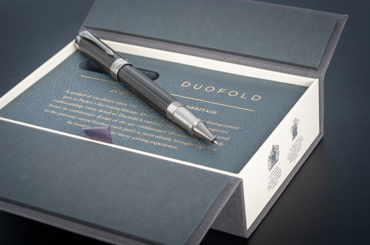 Ручка роллер Parker Duofold Prestige Centennial Black Chevron CT от официального дилера Parker в Казани. Вы можете дополнительно заказать гравировку, которая подчеркнет Вашу оригинальность и придаст памятность статусному подарку. Все ручки Паркер поставляются в фирменном футляре.