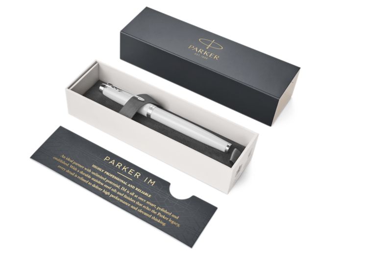 Ручка роллер Parker IM Metal White CT от официального дилера Parker в Казани. Вы можете дополнительно заказать гравировку, которая подчеркнет Вашу оригинальность и придаст памятность статусному подарку. Все ручки Паркер поставляются в фирменном футляре.